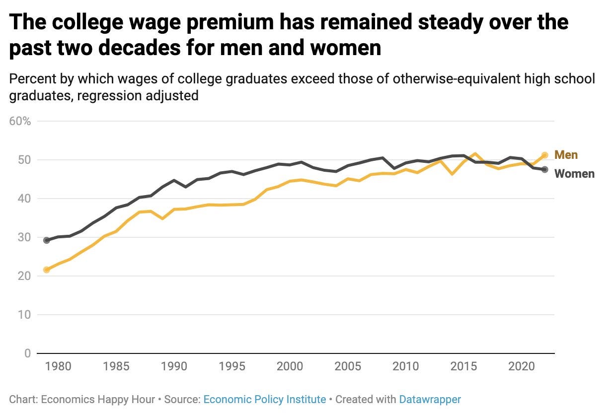 Matt Kicked it off with a classic Founders All-Day IPA, while Jadrian went with a Dark Starr from Starr Hill Brewery. The two opened the show by chatting about the administrative parts of their job like alumni networking and commencement festivities. Since we were talking about graduation, it seemed like a good time to talk about why college degrees are so valuable. Americans who have a college degree earn about 50% more than people who only have a high school diploma: