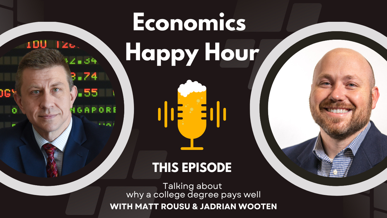 In this episode, Matt and Jadrian explore the fascinating relationship between college education and higher pay. While the conventional belief suggests that obtaining more knowledge and skills through education leads to increased earning potential (known as the human capital model), we delved into an alternative explanation: the signaling effect. This economic concept suggests that a college degree acts as a signal to employers, indicating valuable attributes such as intelligence, work ethic, and conformity. It’s an interesting conversation because it sheds light on the complex dynamics behind a complicated years-long experience for a lot of people.