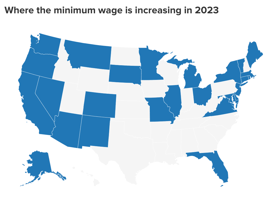 We’re talking about the minimum wage in this episode as 23 different states raised their minimum wage this year. A minimum wage is a legally binding price floor that mandates firms can’t pay workers below that wage. There are different minimum wages for groups of people based on whether they earn most of their wages from tips or if they are in a particular group of workers who are exempt from minimum wage laws.