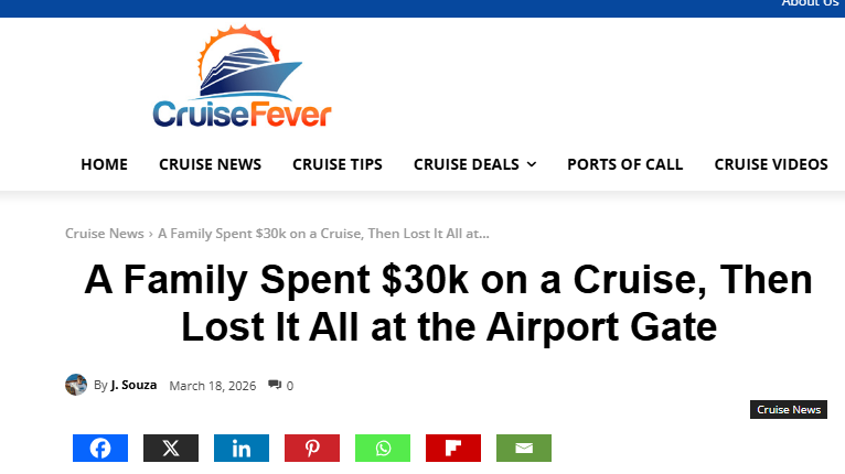 Today’s episode was motivated by an article Matt read about a family who spent $30,000 on a cruise but lost it all at the gate. The issue? They were scheduled to fly into the cruise port the morning of departure, but their flight was delayed just enough that they missed the cruise entirely.