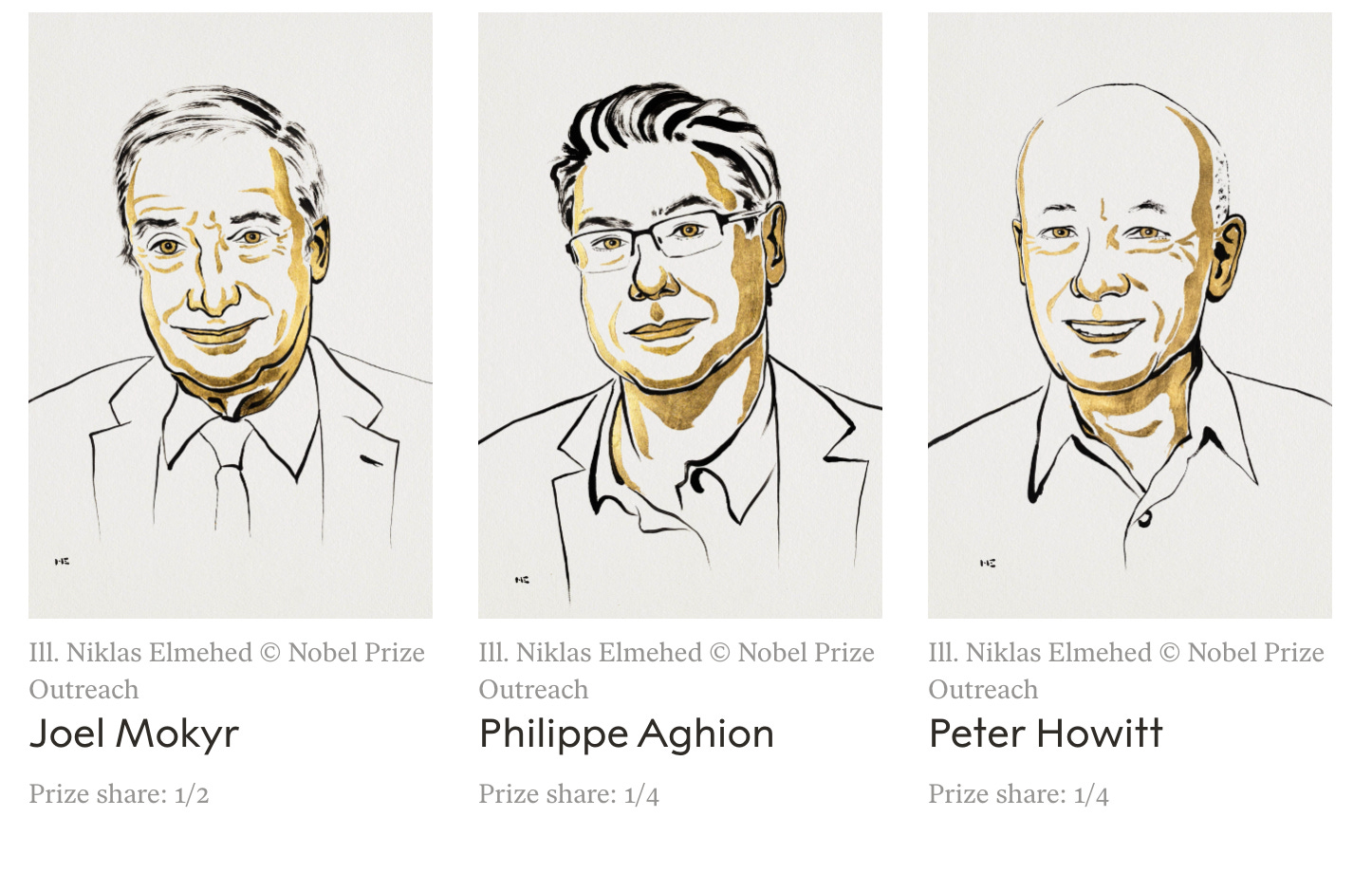 The 2025 Nobel Prize in Economics and how it was split among three researchers