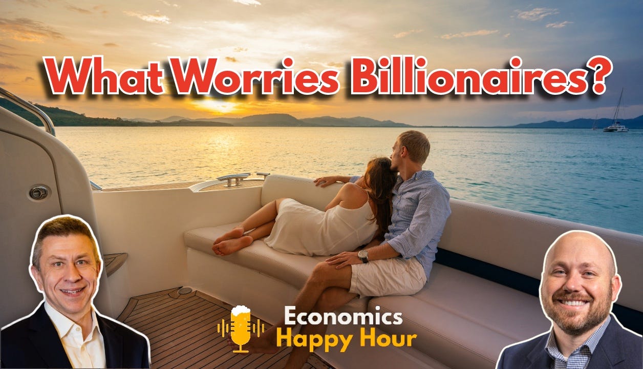 Have you ever wondered what billionaires think about the economy, the future, or life more broadly? Wonder no longer. JPMorgan Bank surveyed billionaires on exactly these questions, drawing insights from 111 billionaire principals across 28 countries and more than 15 industries. Peter Coy (Economics for Everyone) helpfully summarized the findings on his Substack. One result stood out in particular: some of these billionaires (especially those who inherited their wealth) say they’re genuinely afraid of losing it all.