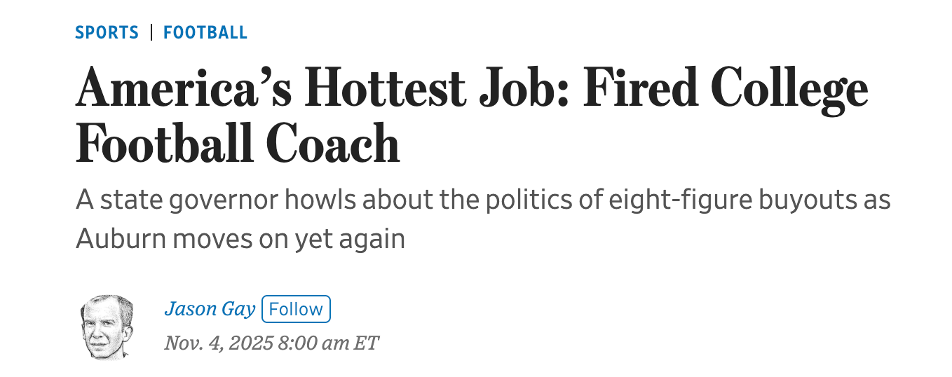 College football is big business. While universities often talk about tradition, rivalries, and student spirit, the finances tell a story of massive contracts, enormous buyouts, and constant leadership churn. This week, Matt and Jadrian explore the economics behind college football coach buyouts and ask why schools pay millions to people who they consider bad at their job. We explore what these buyouts say about incentives, risk, and market competition in college sports.